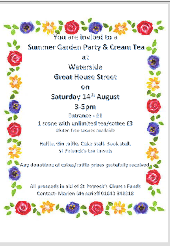 Diary Date! Summer Garden Party on 14th August Published on July 30, 2021 by stpetrock1 Share this: Email a link to a friend (Opens in new window) Email Print (Opens in new window) Print MoreTweet Share on WhatsApp (Opens in new window) WhatsApp Like Loading... Related
