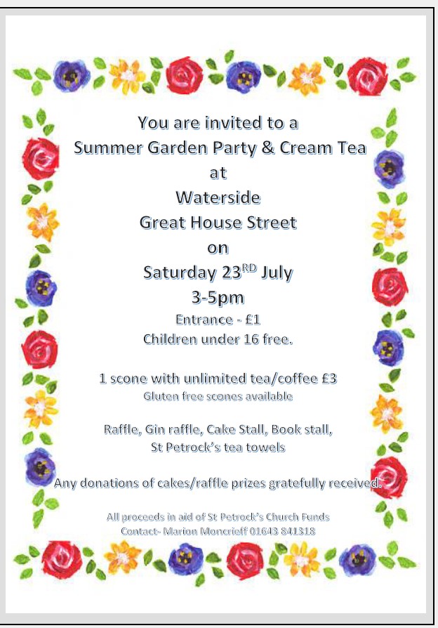 Village Garden Party Saturday 23rd July Published on June 28, 2022 by stpetrock1 Share this: Email a link to a friend (Opens in new window) Email Print (Opens in new window) Print MoreTweet Share on WhatsApp (Opens in new window) WhatsApp Like Loading... Related