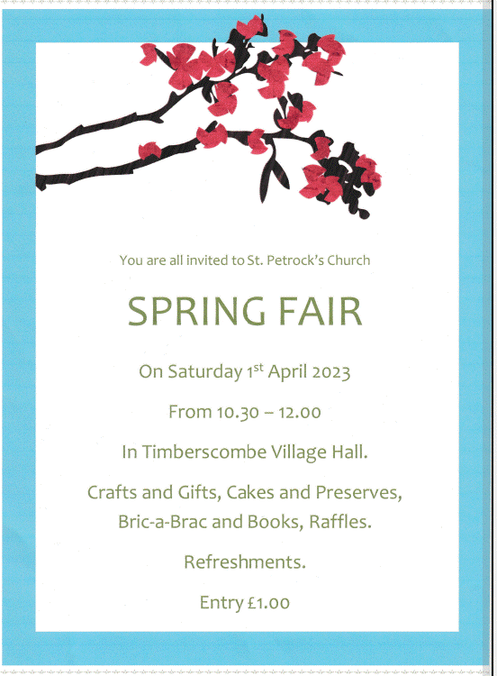 A reminder that the spring fair is on saturday 1st april. see you there! Published on March 28, 2023 by stpetrock1 Share this: Email a link to a friend (Opens in new window) Email Print (Opens in new window) Print MoreTweet Share on WhatsApp (Opens in new window) WhatsApp Like Loading... Related