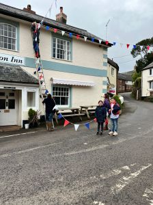 Timberscombe village are now raring to go to celebrate King Charles III Coronation. The bunting is up and everything is in place for a fun packed day on Sunday 7th May.