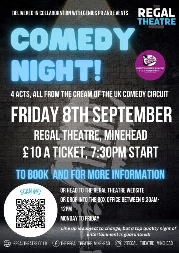 Book now – join in and tell your friends… let’s make Comedy Night a regular in Minehead as laughter Is the very best medicine!