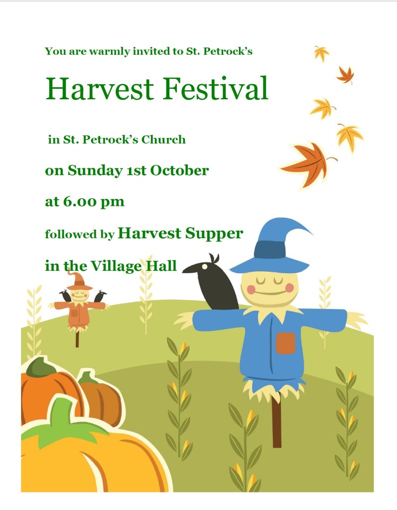 Harvest festival with poetry and readings, followed by supper in the village hall – do join us! Published on September 20, 2023 by stpetrock1 Share this: Click to email a link to a friend (Opens in new window) Email Click to print (Opens in new window) Print MoreTweet Click to share on WhatsApp (Opens in new window) WhatsApp Like Loading... Related