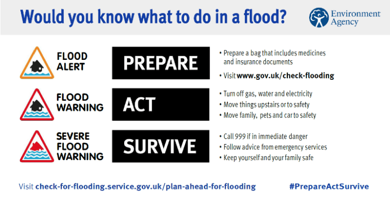 Where to find further information For local weather information including weather warnings visit the Met Office at: The Met Office’s Community Resilience website: Met Office Community Resilience To sign up for flood warnings: Sign up for flood warnings – GOV.UK (www.gov.uk) For river, sea, groundwater and rainfall levels: River, sea, groundwater and rainfall levels Wessex Area Water Situation Reports. Monthly reports are produced on Gov.uk Flood Re has been set up to help those households who live in a flood risk area find affordable home insurance. For more information contact your insurer or visit: www.floodre.co.uk The National Flood Forum provide further advice and support at: Flooding – Find out the answers to frequently asked questions: Flooding FAQ Property Flood Resilience Toolkit | The Flood Hub. This toolkit contains all the resources you need as a basic introduction for your property to become more flood resilient. Click on each resource to download it and build up your toolkit! |
