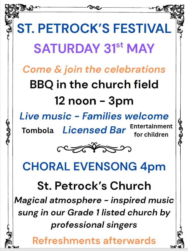 Patronal Celebration and Choral Evensong – come along and enjoy a very special day at St Petrock’s! Published on May 18, 2025 by stpetrock1 Share this: Click to email a link to a friend (Opens in new window) Email Click to print (Opens in new window) Print MoreTweet Click to share on WhatsApp (Opens in new window) WhatsApp Like Loading... Related