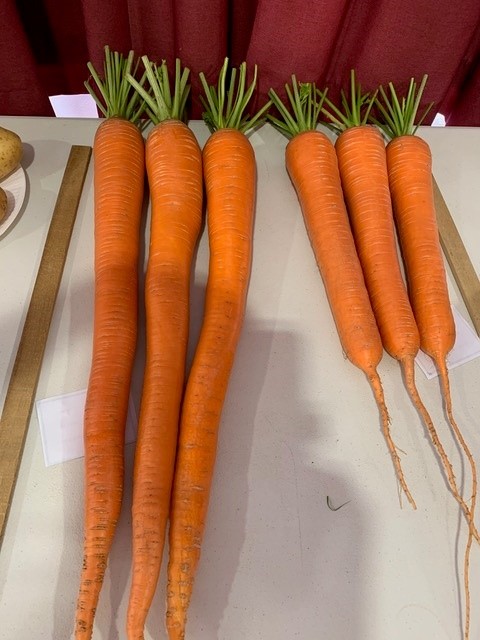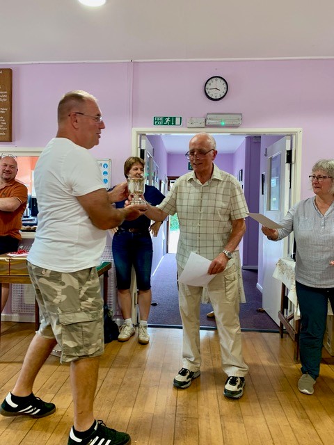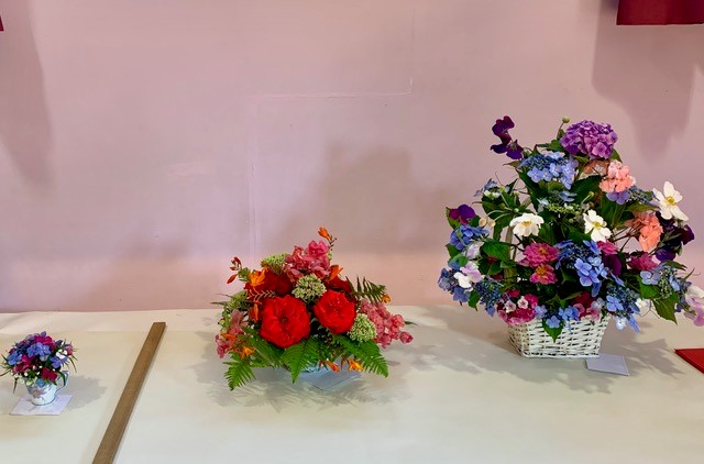 One comment, “it’s been a difficult year for growers’ was made; despite this there were some spectacular exhibits on the veg table, with Andy Heard, once more, winning the Joyce and Eddie Smith trophy and getting the “People’s Choice” with his carrots. The Cut Flower Section was smaller than usual because varieties had been ‘peaking too early’, although the Floral Arrangers were not deterred and produced some exquisite arrangements. There was plenty to admire in the Art and Handicraft sections, with shades of ‘The Great British Sewing Bee’ showing in class 61. Youngsters in the village were also well represented, again including newcomers delivering some excellent artwork and models.
