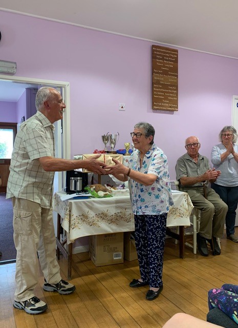 Her connection with the Village Hall has been constant as she has continued to be its cleaner for 36 years, until this year, when she decided it was time for her to step down at the age of 88! She is pictured receiving her retirement gift from Village Hall Chairman, Martin Booth.