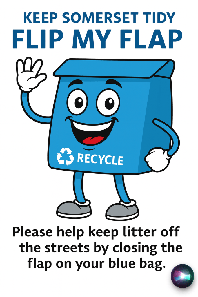 On my many walks around the village I am constantly seeing plastics , etc which have been blown out of open blue recycling bags. Please close the flap on your bag and put heavier items, such as your brown bin, on top of other waste to prevent it being blown away.