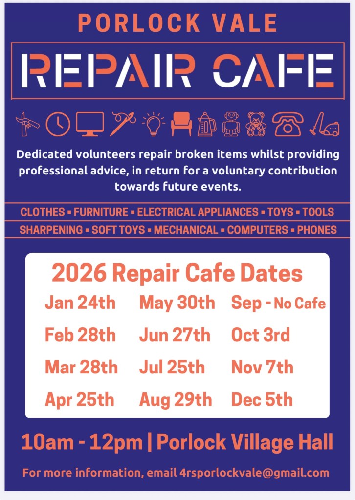 Repair Cafe Porlock Published on February 14, 2026February 13, 2026 by Lesley Webb Screenshot Share this: Email a link to a friend (Opens in new window) Email Print (Opens in new window) Print MoreTweet Share on WhatsApp (Opens in new window) WhatsApp Like Loading... Related