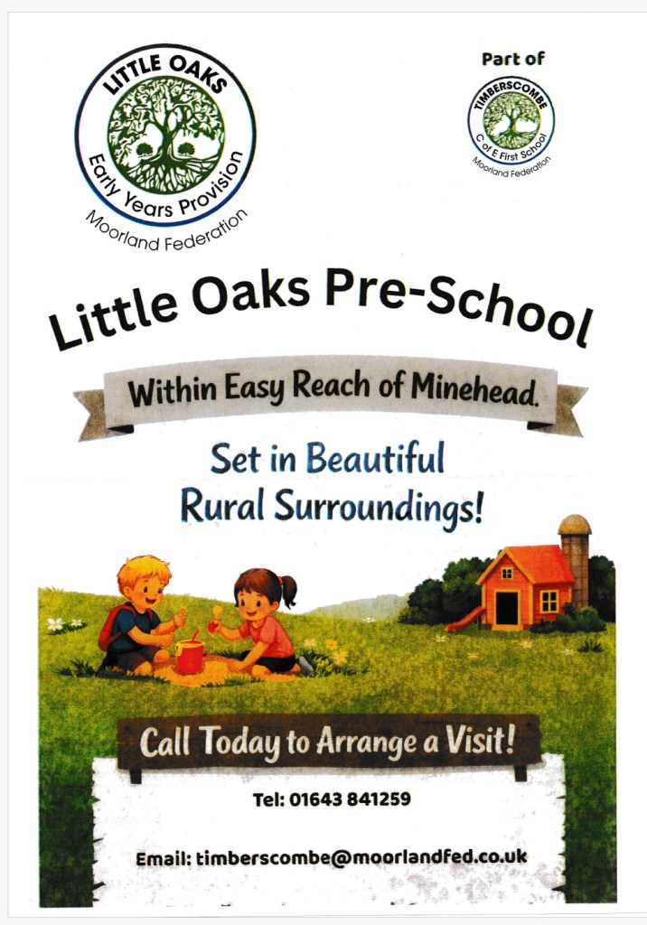 Support Little Oaks Pre-School in Timberscombe! Published on March 26, 2026 by stpetrock1 Share this: Email a link to a friend (Opens in new window) Email Print (Opens in new window) Print MoreTweet Share on WhatsApp (Opens in new window) WhatsApp Like Loading... Related