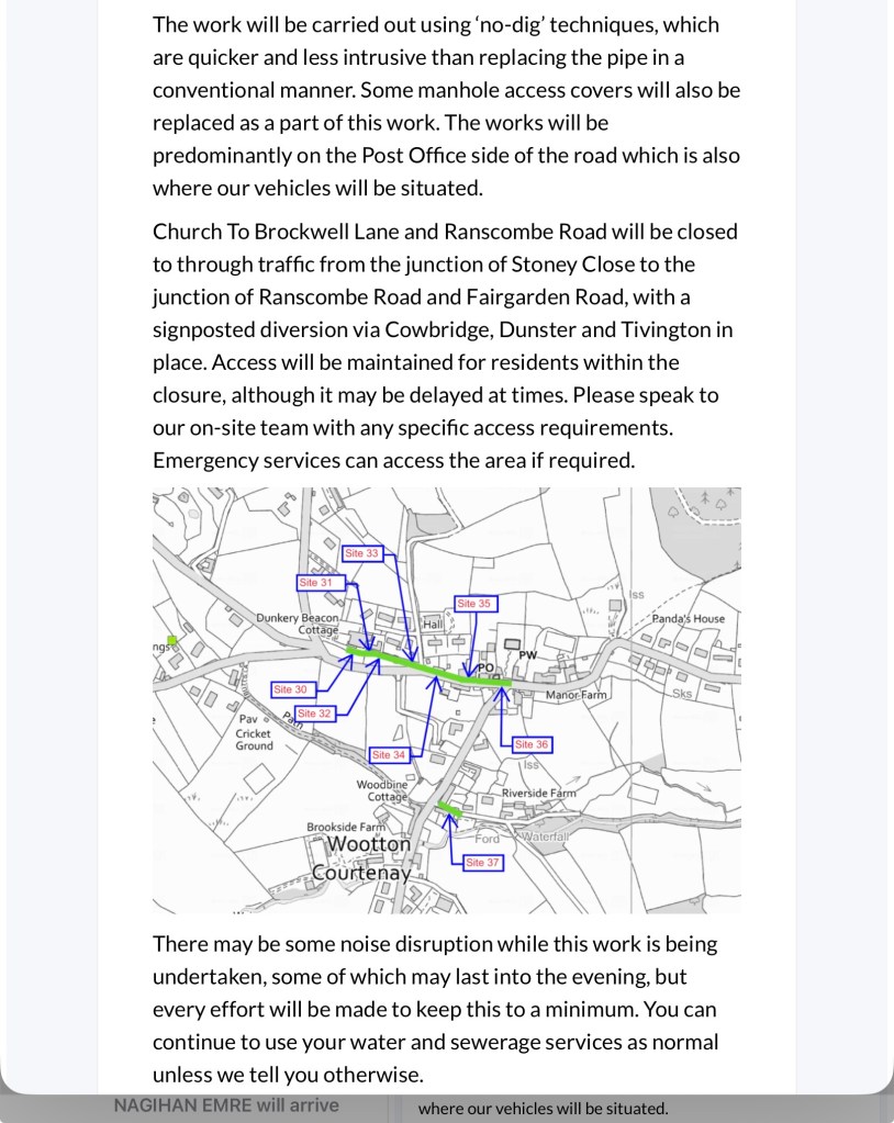 The works are expected to commence on 27th April 2026 and last for 12 days to enable Wessex Water to carry out sewer lining works.