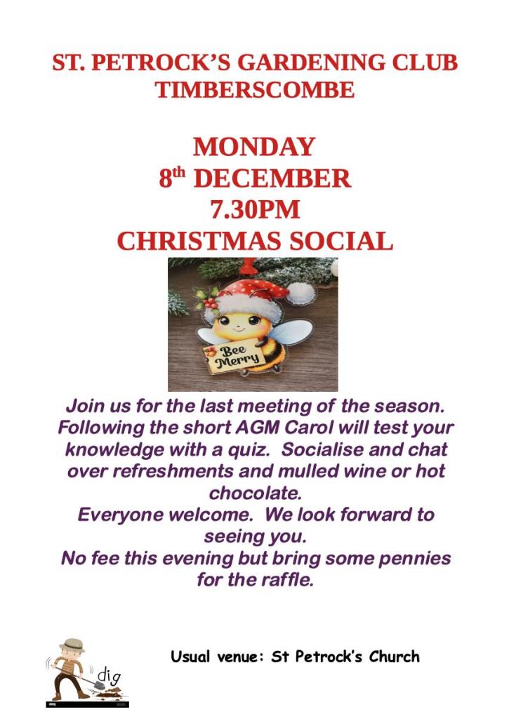 Don’t forget Gardening Club Christmas Social Published on December 3, 2025 by St Petrock's Gardening ClubLeave a comment Share this: Click to email a link to a friend (Opens in new window) Email Click to print (Opens in new window) Print MoreTweet Click to share on WhatsApp (Opens in new window) WhatsApp Like Loading...