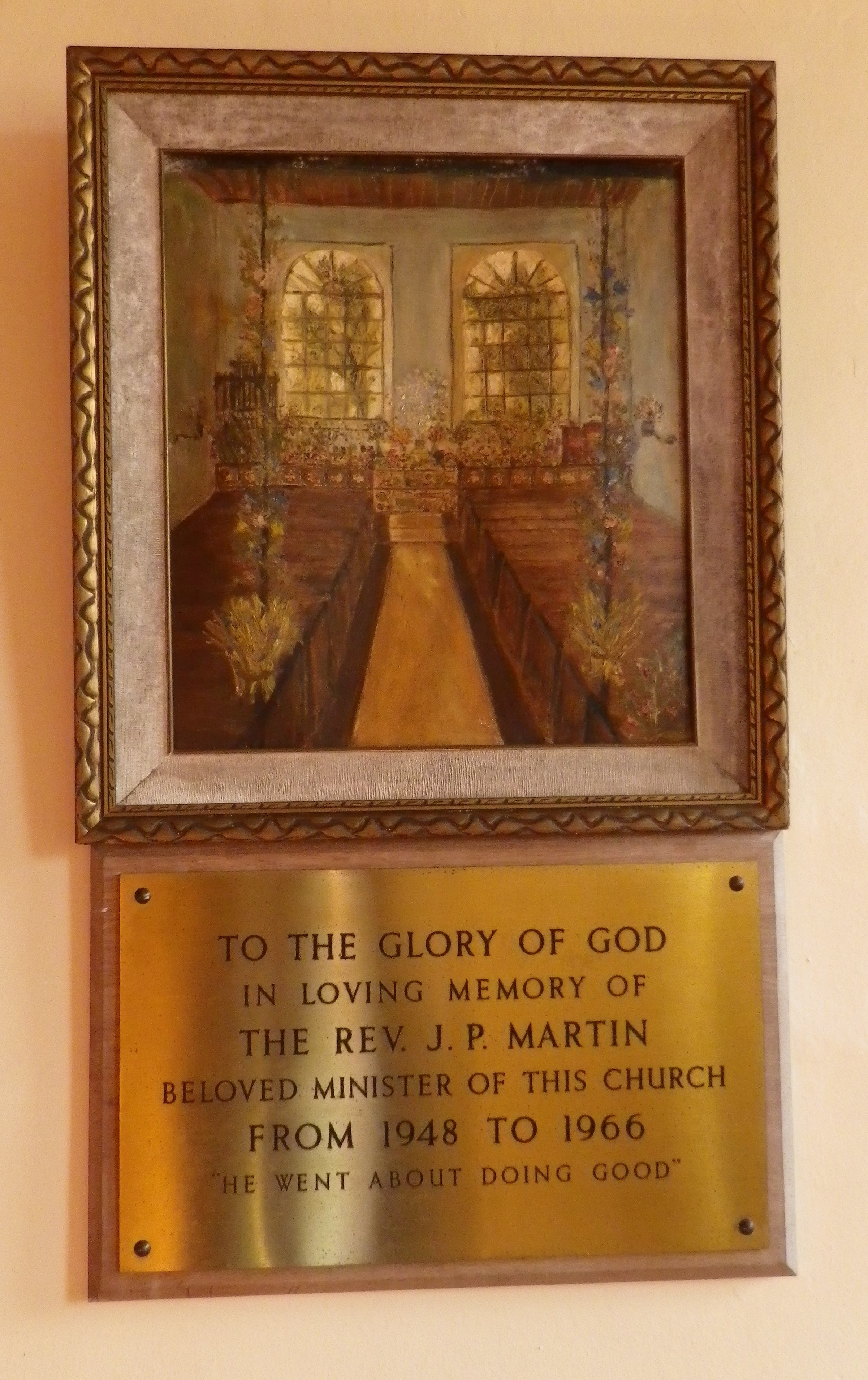 The east wall contains a memorial to Timberscombe’s preacher Revd J.P. Martin, author of the “Uncle” books. His painting, “Harvest Festival”, now hangs in St Petrock’s Church as gifted by James Currey, grandson of Revd J.P. Martin in July 2019 when the Chapel closed. The deconsecration ceremony for the Chapel took place on 18/08/2019.