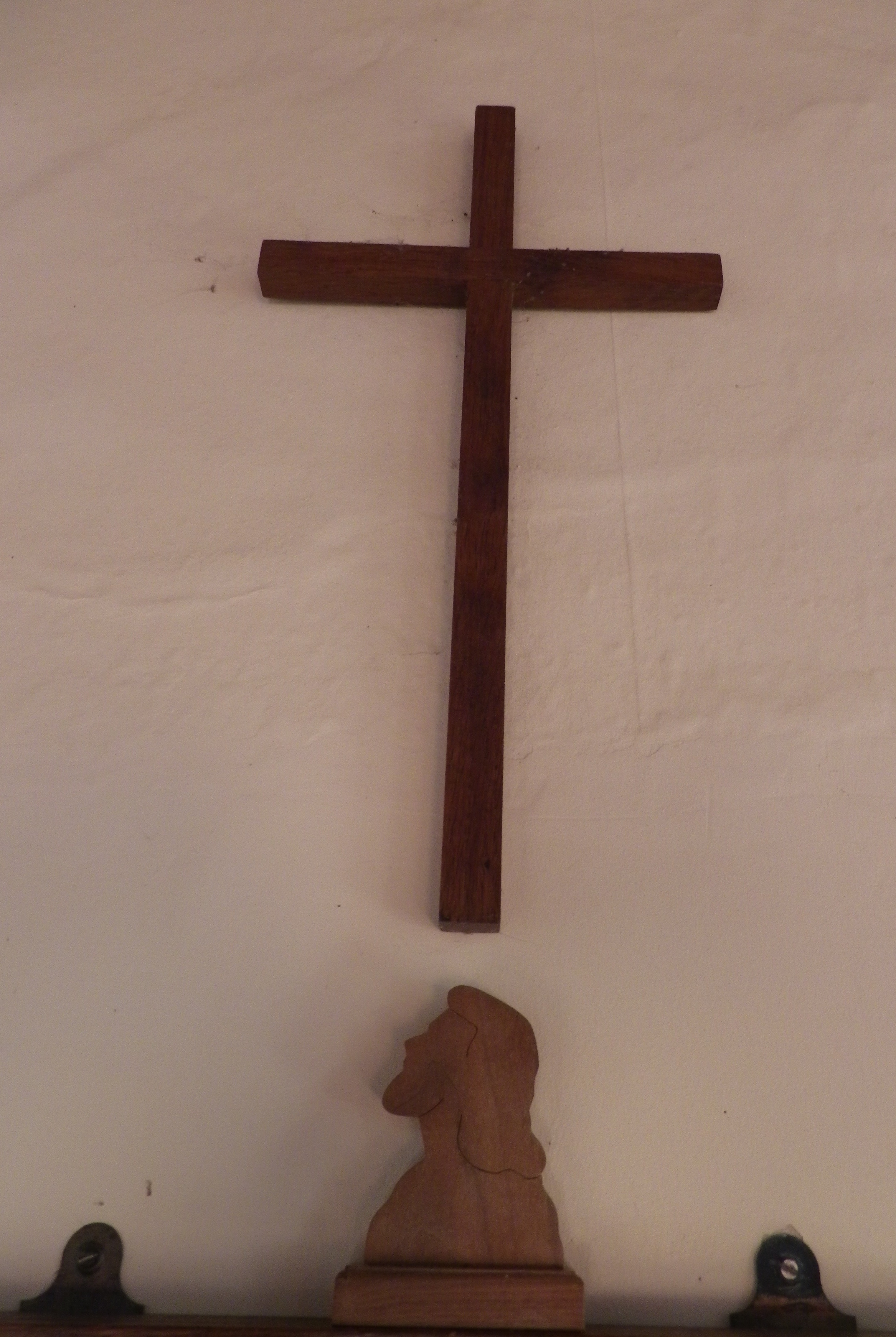 The cross on the south wall was made by former minister Revd Neville Pugh. The figure-head was made by a friend of an American minister here on an exchange programme.