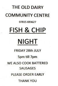 Fish and Chip night Published on July 26, 2023 by Lesley WebbLeave a comment Share this: Email a link to a friend (Opens in new window) Email Print (Opens in new window) Print MoreTweet Share on WhatsApp (Opens in new window) WhatsApp Like Loading...